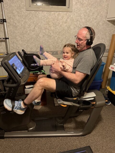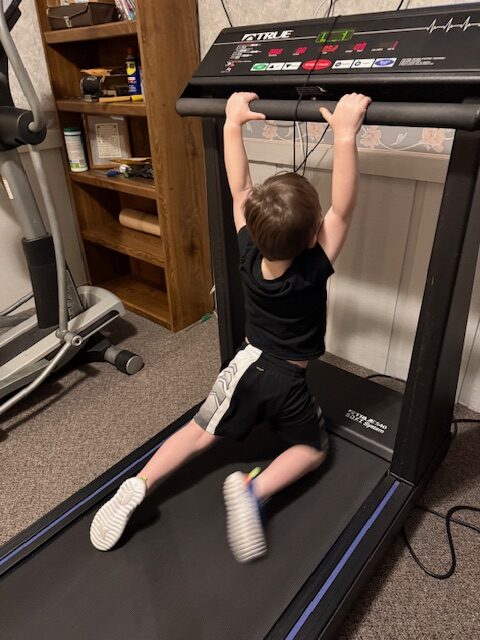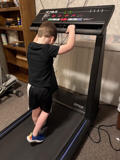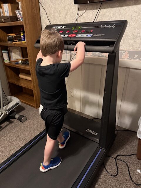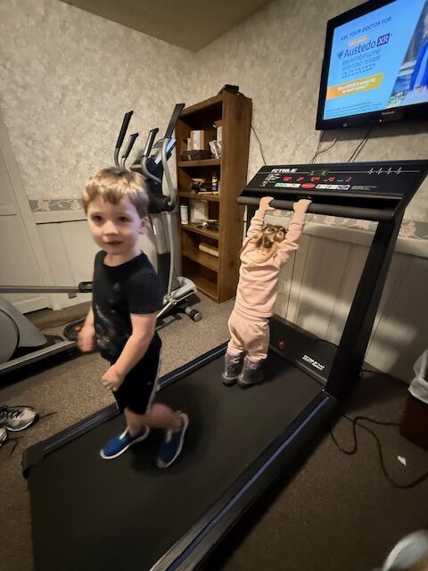 We got to have the grandkids this weekend. Connor and Tessa wanted to help me work out. Sarah took the dog for a walk outside, and then I rode the stationary bike inside. A few minutes after I got started they both came running downstairs and wanted to workout too. Tessa started by riding with me on the bike, and then they wanted to be on the treadmill. I don’t let them go faster than 1 mile an hour, so it is pretty slow. I just had to laugh watching Connor. He starts off just walking, then starts getting a little more confident, and “cocky”, and tries to get fancy while I am taking pictures of him, Follow this sequence of his pictures and I am sure you will get a laugh also!