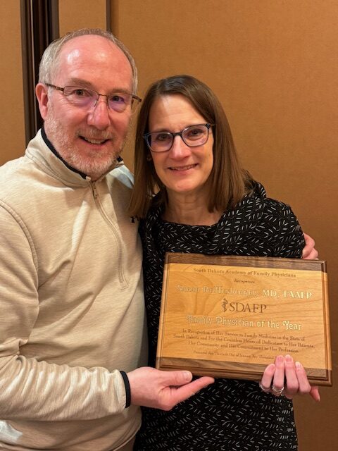 We had our annual Family Medicine Conference out in the Black Hills these past 4 days. It took place at the Deadwood Lodge. Friday night Sarah was honored with becoming the South Dakota Family Doctor of the Year! She has accomplished great things in her career of 32 years in Watertown, 35 years as a physician. She has delivered well over 1,000 babies! Babies she delivered were now coming in as moms to deliver their babies! She stopped doing OB at the end of January last year. She always wanted to do at minimum 2 years of just clinic after completing OB. She will decide when she will retire. Doing OB takes its toll physically on you, and she called it a career with this last year. She has been a past president of our South Dakota Academy of Family Physicians. She has spent all of her years teaching other students–medical students, residents, nursing students, etc. We even teach other Family Physicians on topics we have to do to maintain our Board certification. These sessions with the Family Doctors are questions/lectures that can take up to 4 hours at a time. We have done 30 of these sessions.