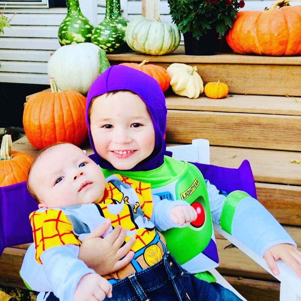 Pictured above are my boys from a few years ago: Buzz Lighyear & Woody from Toy Story. -Kelsey