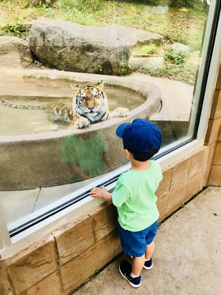 •Take in the zoo! You’ll get to explore and check out the animals, but also enjoy a nice walk. My son Corbin loves the zoo–the picture above is of him checking out the tiger.