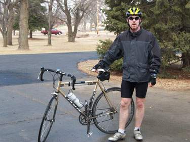 Here I am saturday morning, after going out for a 40 mile bike ride. It was in the mid 50’s when I went, drizzling, and very foggy. With all of the melting that is has been doing, the mud was flying. But, it felt so good to be outside riding again, instead inside. By the time the sun was really coming out, so was the wind, so it was drying the mud fast. Here is a close up view: