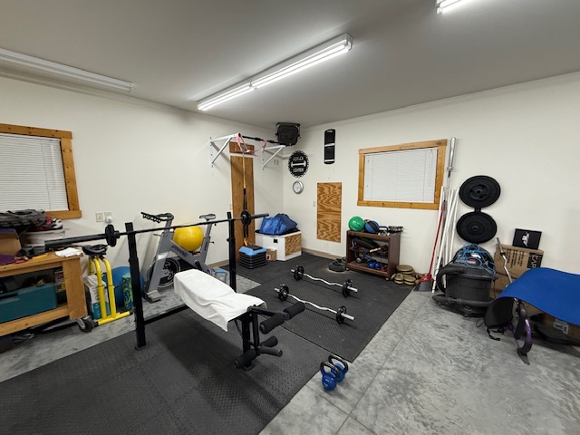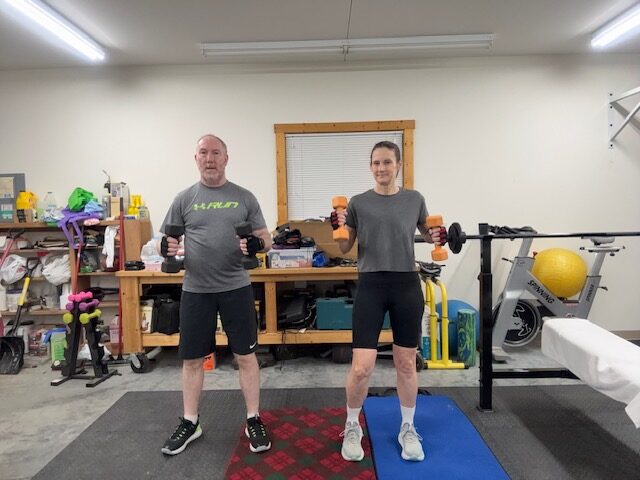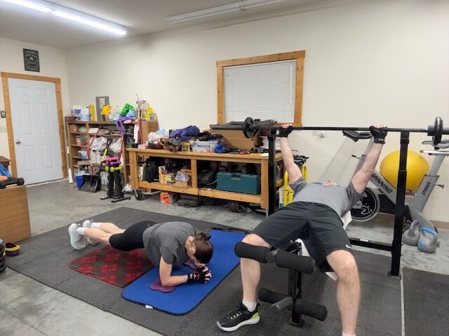 At least the garage is heated so our “Reiflex Center” is in the corner, and we can go out anytime we want. Different varieties of weights, and right now still using lighter weights but doing more repetitions. Who knows, maybe in the long run this will turn out to be a good thing and I can build strength and stamina with my arms and chest. At least when it came to running, the longer the run, the more fatigue my arms would get, not just my legs. The arms, shoulders, and chest help propel you forward on those runs as well. So look out…if I am in a race later, and I am beside somebody, they might just get conveniently “bumped” out of the way! Ha!