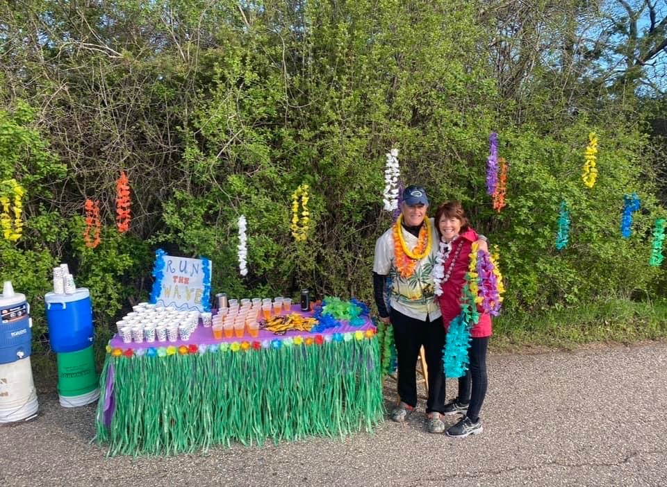 We had a ton of people helping on the sidelines as well. Cheerleaders, water station entertainment. Tom and Sue Beaudry were out there cheering and serving!