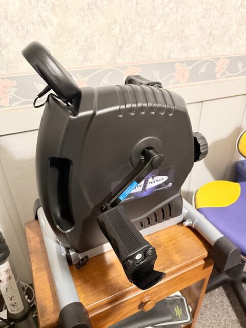 So now I get to work with dumbbells! A dumbbell doing dumbbells! What a deal! At least I am moving. I also got a new piece of equipment, that later I could also use for my legs, but right now I am using for my arms.