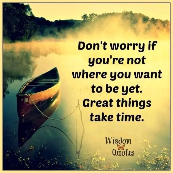 Great way to end this blog for this week. I need to keep reminding myself of this. Everyone, we all have challenges, and we need to keep our heads held high. “Don’t worry if you’re not where you want to be yet. Great things take time!” Keep moving everybody!
