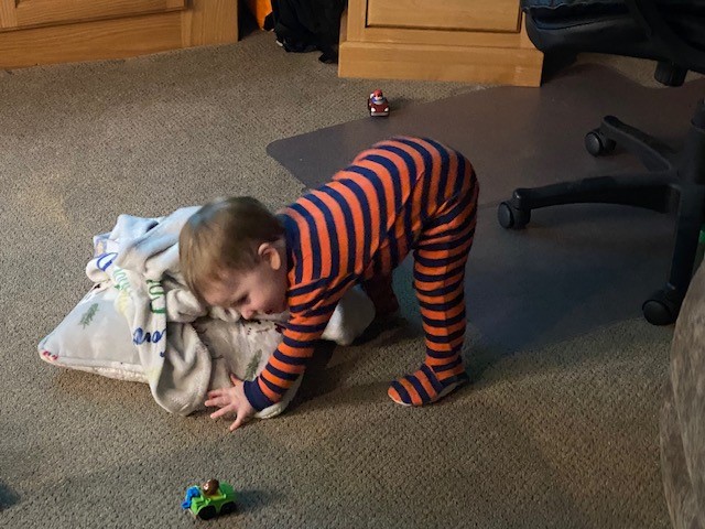 He started doing all this bear crawling this weekend! Hilarious!