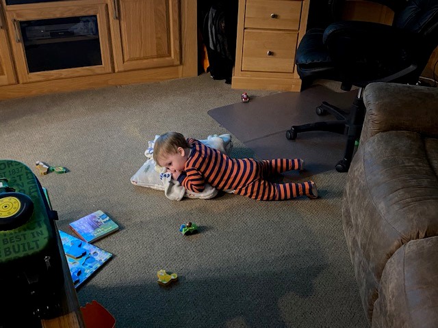 I took him on a trip to Menards! We had a great time. We got to watch some movies on TV, and he likes any of the ones with singing in it. He got into the movie “Tangled”, and just sat on his tractor and was glued to the TV!