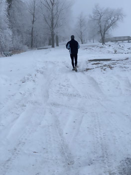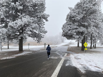 It really helps when the city plows out certain sections of the trail. For a lot of our runs, we go to the Zoo and park, and then go out on the trail from there. This way, we are off traffic, and can be much safer in general. This is also a good time to be out with friends!