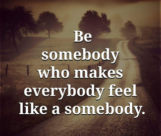 We are all unique. We all have our own special traits, quirks, habits, annoyances, attributes, etc. We all can work on improving ourselves, but we can start by helping to make somebody else feel like somebody–somebody special! Friends and family!