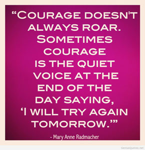 You need to keep digging, and keep fighting, to find the courage within yourself. Never give up. Keep saying “I will try again tomorrow”. Do not give up on yourself. There may be obstacles in the way, and setbacks, but you keep fighting. I have said this on my blog many times that there will be good days and bad days. Keep moving! Keep trying!