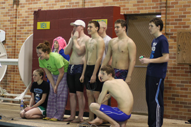 As she was coming down each length of the pool, she had a group of her team mates screaming and yelling and cheering her on. They were all done with their events, but they hung around to cheer on a team mate. With encouragement like this, it makes the activity much easier. That is what a training partner does for you also. Whether it be your spouse, significant other, neighbor, friend, or a pet, like Buddy, you have someone to keep you going. Someone to help keep you motivated. It makes the exercise so much more enjoyable, and meaningful. Here they are cheering her on!