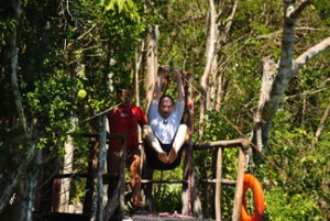 Here I am being pushed on the zip line. This, and the jump off of the deck, were a lot of fun! This is also part of a good vacation, right??