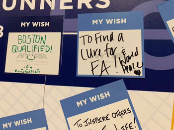 She was running mainly to represent and raise money for Team FARA, and here she is posting her wish on the wall.