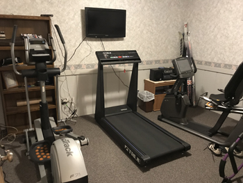 We all took advantage of the “Reiflex Center”, my garage gym, and exercised in there. We even got Zeus involved in this!