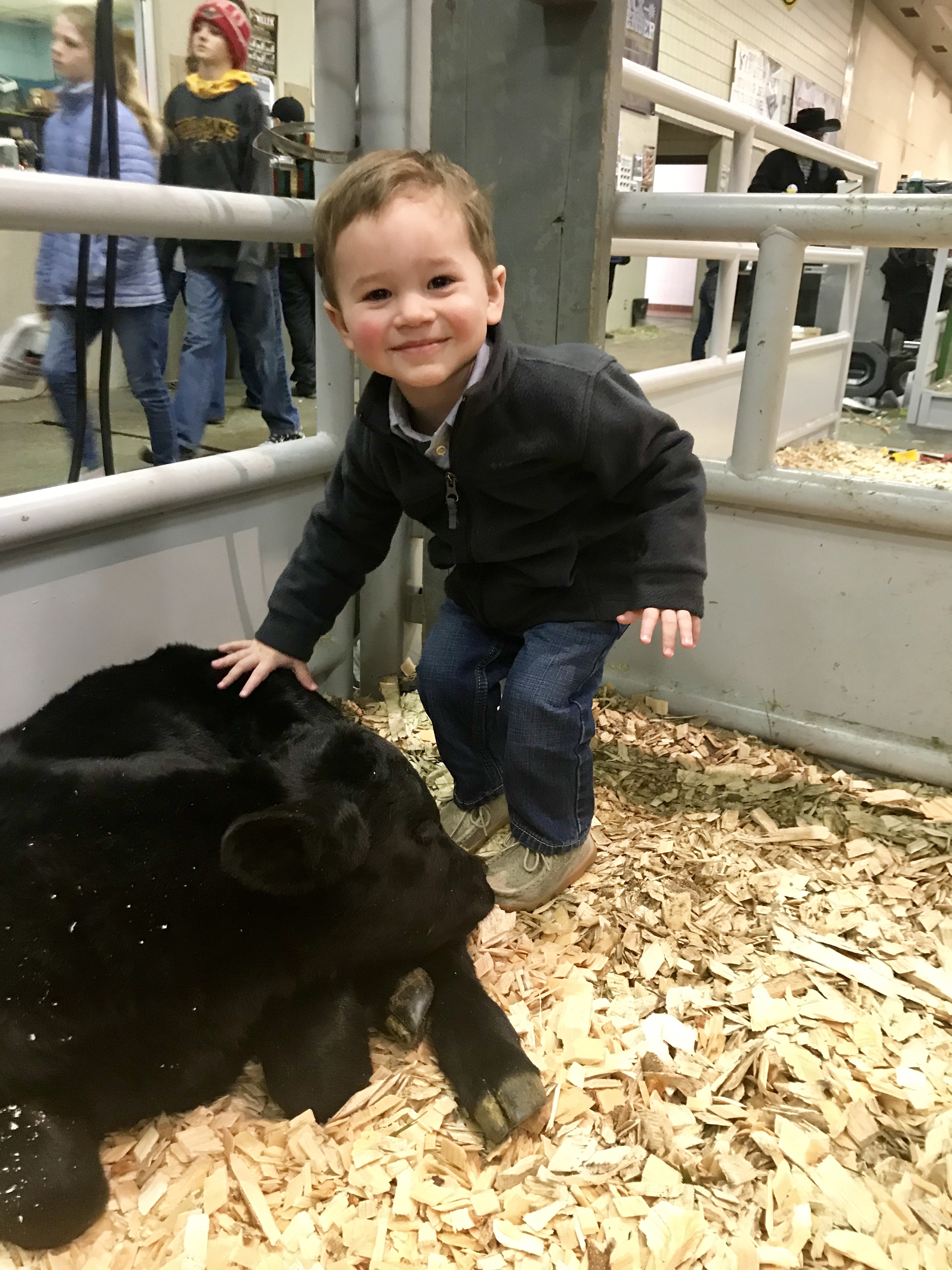 Corbin is an animal lover!! He loves his baby calf here at the Black Hills Stock Show!