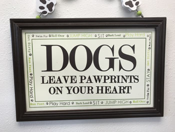 He is our friend, companion, training partner, home protector…there to cheer us up any minute of any day. He is not just a dog, he is a part of this family! The sign hanging up at the Vet’s office says it all, so I had to take a picture.
