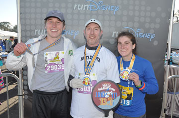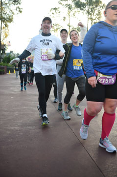 The weather was kind of a shock…28 degrees at the beginning of the 5k. The tough part of all of this was getting up at 2:15 AM every day, getting bused out to Epcot, which is where the start and finish of all of the races took place. Start time for the race was 5:30, and you are all assigned a corral to be in for the start. Between 20-25,000 people were in each race, and my daughters had never run a half marathon before, so we were assigned the last corral for all of the races. By being in the last corral, that meant we did not start the race until approx. 6:30 every day, so we had to stand outside for over 3 hours every day! That was harder than the run. Steve and I had a ball for the 5k, then I did the 10k myself the next day, and on Saturday, Sarah, my girls Molly and Megan, and our neighbors son Noah Hauck, all did the half marathon. Megan and Noah ran with me, and Molly ran with Sarah. It was a thrill! We got to run together, go through the them parks, high five all of the characters out on the route, and lots of pictures to be taken. Here are several: