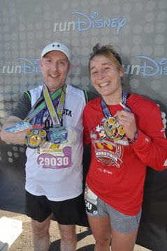 Steve and I were signed up to do the Dopey, but he hurt his knee and was unable to do this. He was able to “gut” it out, and he ran the 5k with me.