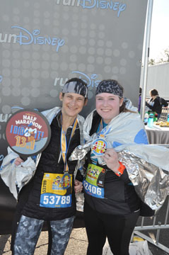 And this Summer, they were all home, and my girls had their boyfriends with them, and they all ran together in the Hump Day 5K! It was great having them all home, and they were all out running too! I love it! I have to think deep down we did something right by instilling in them the importance of exercise, and taking care of themselves. I will be talking about Nick coming up in the future posts. But, this last month, when my twins came with us to Orlando to run in the Disney World half marathon, I was very excited, and proud, to have them tackle a half. Neither one of them had gone this far before. I ran with Megan, and Sarah ran with Molly. Lots of pictures along the way, and quality time outside in Florida…running together. I don’t know who was happier about this…me, or them. It was a great trip. I hope there are more in the future for us to get to run together…and then also with Nick too! Here Megan and I are hamming it up for one of the photographers on the course, and Sarah and Molly after they finished!