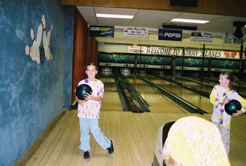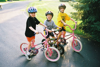 We got a Burley to take behind our bikes, and to go walking with when the twins were born. This way we could get out and do things, and they got to come along. We all got to spend time together. We had this Burley for years, until they were all finally old enough to walk on their own, or ride bikes on their own. We got them involved with lots of activities: running, swimming, riding bikes, bowling. Anything to keep us moving. Here we are doing all these activities.