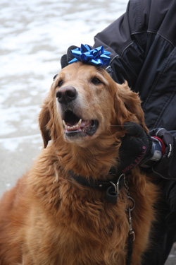 Went out with Buddy this AM for a walk. We got some snow last night, but with the upcoming temps, I don’t think it will last long. Buddy was in the holiday spirit, and was fired up to go walking.