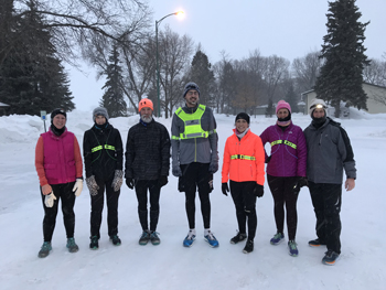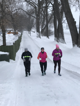 Here, Jill, Sarah, and Paula are out doing some extra running after the group got done. It was time for “girl talk” as well. Time to bounce things off each other, discuss what is happening in life, and help keep each other motivated to keep trying. We all face struggles in our lives, and the snow and cold just makes it even more challenging. Make it through February, and we will be on the downhill stretch. Keep telling yourself that! Keep moving everybody!