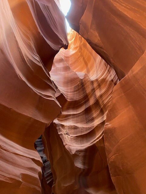 One day we then took a drive from there and went to Page, Arizona. We got to see Horseshoe Canyon, and then Antelope Canyon. Antelope Canyon was incredible. It is on Navajo land, and so we had a tour by a Navajo guide. Wow! I am still in awe of the scenery, and to think this was all created in sand by wind and water…and thousands of years! So, hang on…here comes this tour!
