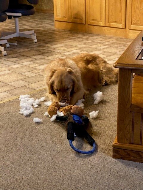 Even Dakota has been getting bored, wanting to spend more time outside. She has chewed as many of her toys inside as she can! She is ready to take in the nice weather too. Went for a couple walks already, and she is leading the charge every time!