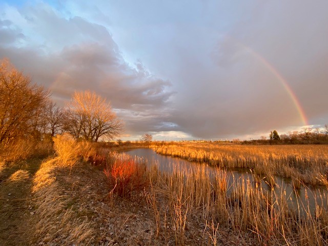 Sarah got the garden tilled and planted her potatoes now. She is the master gardener here! That is her escape throughout the Spring and Summer! The views lately, especially this past week, have been amazing! Even caught a rainbow a couple nights ago.!