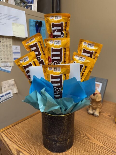It was boss’s day on Thursday. When I got to clinic on Friday my nurse had a bouquet on my desk. Some other people on Thursday had flower bouquets on their desk. This was my flower bouquet!
