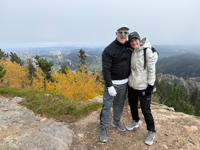 Tom and Sue Beaudry were out there for 3 of the days that we were. Went out to eat several times. Hiked every day! Charlie, their dog, went on all of the hikes as well. Whatever distance we covered, Charlie covered 3 times that! So full of energy while we were out there, then crashed and slept the rest of the day. Here are some shots from Black Elk Peak (former Harney Peak):