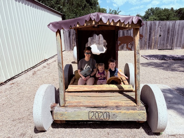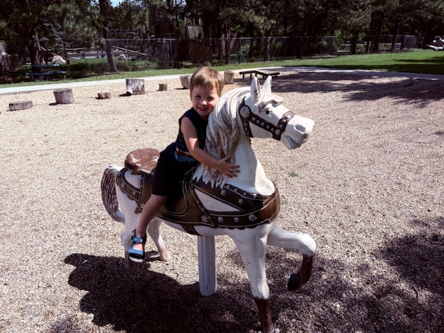 We rode the horse. Got on a elephant. Rode the Flintstone’s car. Did an obstacle course. Saw all the animals, birds, fish. Watched the bear go to his picnic table for lunch and climbed up to the table and sat his butt on the chair and ate. Connor thought that was a hoot! We hit all of the face boards as well and had to take out pictures in the faces as well.