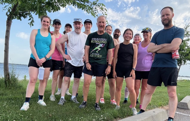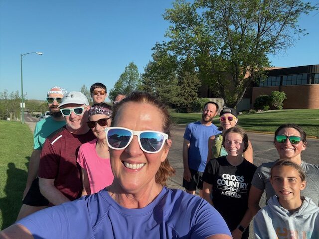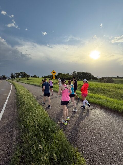 Sarah and I were outside by 6 this AM to take our dog Dakota for a walk before it got too hot. It was already hot and humid with the temperature being in the upper 70″s. Out west the clouds were moving in, it was lightning, and we cut the walk short, not because of the heat and humidity, but we thought we were going to get dumped on. It did rain by 6:30 but was short lived. Our run club meets at 7AM, and we did not know how many of us would show up. As you can see, we had a great turnout. What makes our run club unique? We show up for each other. When the conditions outside scream “stay in bed”, and your body wants to politely agree, but your heart pulls you toward movement. Maybe it’s habit. Maybe it’s discipline. Maybe it’s something deeper: a commitment to show up for yourself…and for each other.