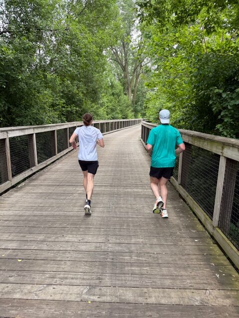 Sarah and I taught our kids well. We have been active and running since we met. Our kids saw it. Watched us. Ran with us. And we watched them run, or swim, growing up. That is how we support each other. Personal records fade. Finish lines change. But running together? That’s the real win! Here is to many more Megan! (We also spent the early part of June visiting our son Nick in the cities–and we ran with him every morning.) Keep moving everybody!