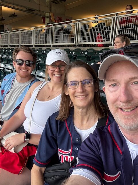 We got to see Nick and Hannah last weekend in the twin cities. We made it an extended weekend to spend with them as Nick’s birthday was coming on the 11th, so we could spend some time with them. We went to Chanhassen Dinner Theatre one night and saw Grease, and then on Saturday we went and saw a twins game. They ended up losing, but it was at least a close game!